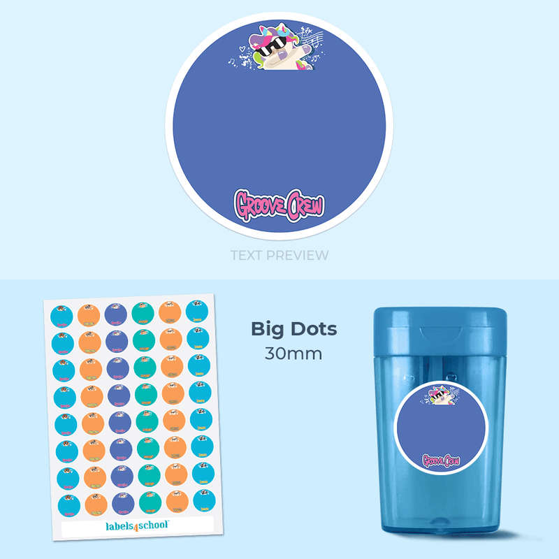 All of our high quality colour labels will adhere to smooth, clean surfaces. These bigger labels are waterproof, dishwasher safe and microwave resistant. Both label and ink are highly durable and can be used on anything from sports equipment to small lunch boxes and juice bottle lids to stationery and baby's pacifiers.