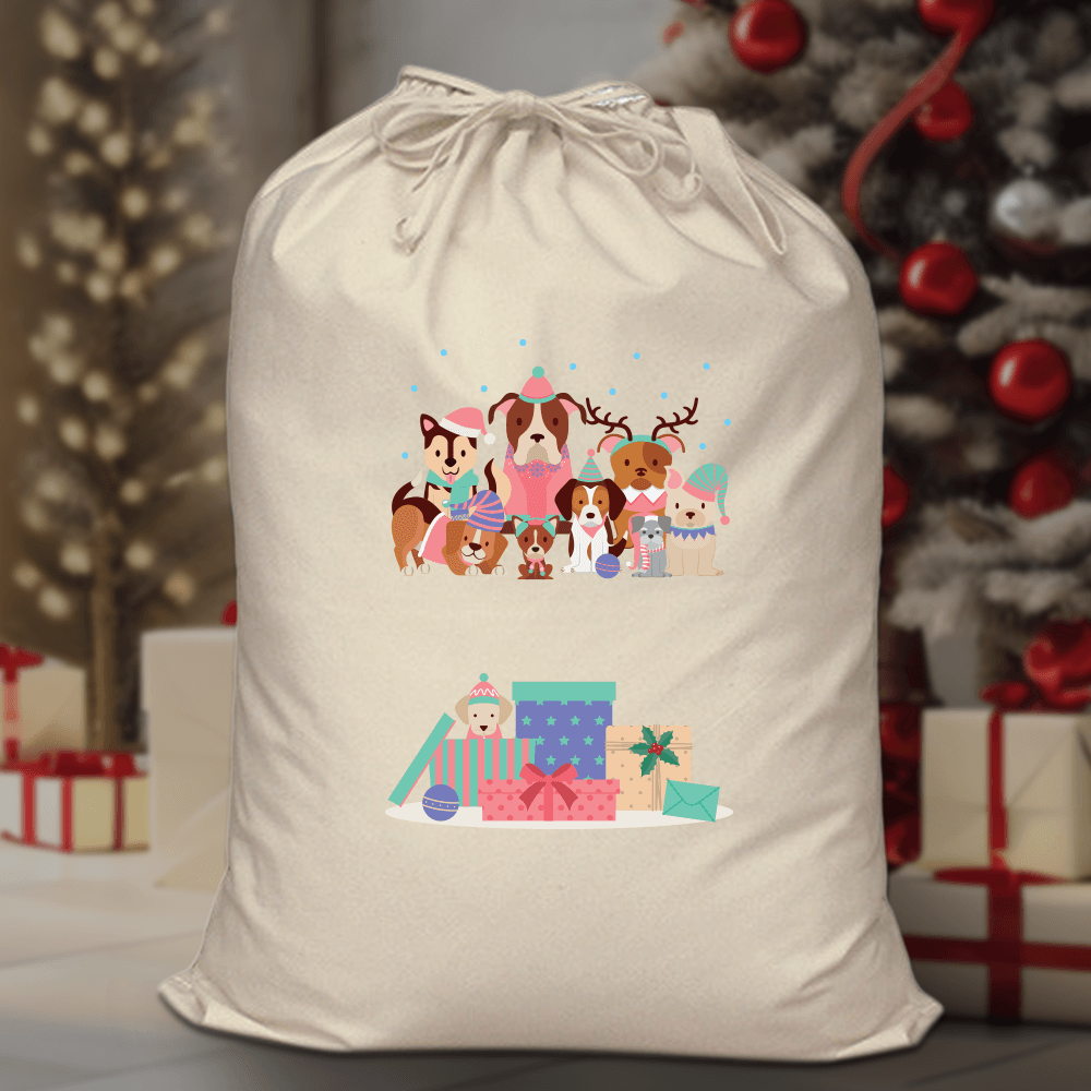 Make Christmas morning unforgettable with our Christmas Dogs Personalised Santa Sack - a festive favourite designed to bring pure Christmas magic to your home.